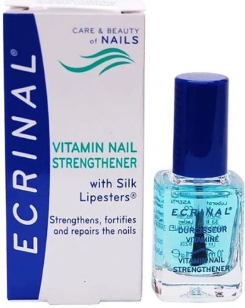 ECRINAL® Vitamínový posilovač nehtů posiluje a chrání oslabené nehty a zároveň podporuje jejich přirozený růst. Je zcela neviditelný, rychle se vstřebává a proniká hluboko do struktury nehtu. Díky kombinaci účinných složek podporuje regeneraci nehtové ploténky, zlepšuje její pružnost a celkový vzhled. Křemík posiluje odolnost nehtu, zinek podporuje regeneraci a zdravý růst, extrakt z celeru zlepšuje pružnost a výživu nehtu, provitamín B5 intenzivně hydratuje a zklidňuje a extrakt z grapefruitových jadérek působí antimikrobiálně a chrání nehet před poškozením. Už po 14 dnech jsou nehty viditelně pevnější, silnější a působí zdravějším dojmem.
