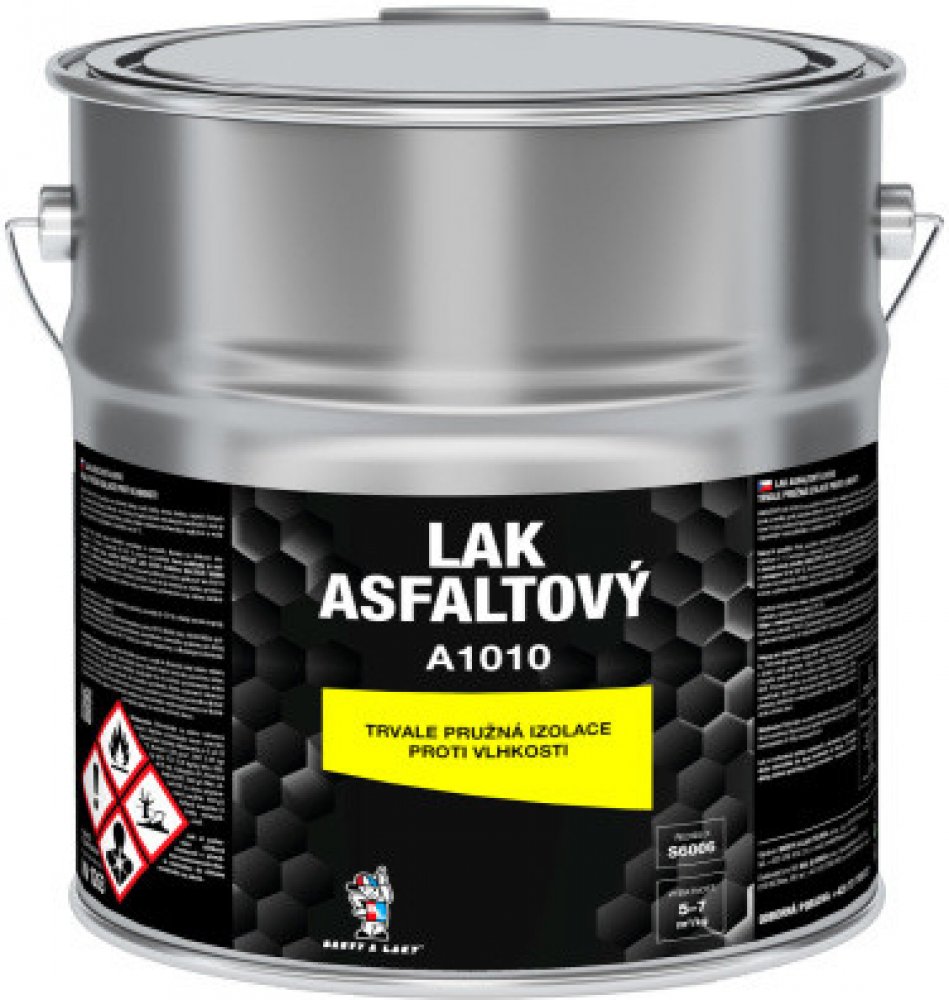Asfaltový černý lak, trvale pružná izolace proti vlhkosti. CHARAKTERIZACE A POUŽITÍ: Používá se k ochranným nátěrům oceli, litiny, dřeva, betonu a omítky proti působení vlhkosti. Je určen pro hydroizolace stavebních konstrukcí, kde je vyžadována trvalá pružnost hydroizolačního povlaku. Nátěr odolává mechanickým vlivům a vodě. Neodolává organickým rozpouštědlům a teplotám nad 40 °C. Není vhodný pro...