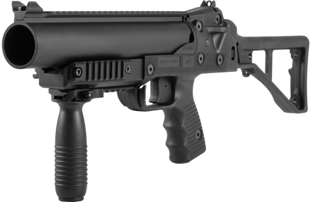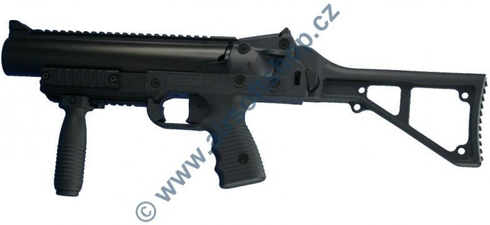 Pistolový granátomet GL-06 BT se sklopnou pažbou. Technická data: princip: granátomet na vložné airsoft plynové zásobníky (granáty) úchyt na zbraň: nelze připojit na zbraň provedení: celokov s polymerním pažbením pojistka: ano váha: 2245 g délka zbraně:38,5 / 59 cm