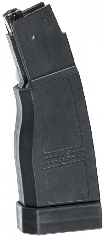 Tento vysoce kvalitní točný zásobník od ASG je navržen pro repliky CZ Scorpion EVO 3 A1 (kromě verze ATEK s šachtou pro tlačné zásobníky). Díky zesílenému polykarbonátovému tělu s logem české zbrojovky CZUB poskytuje vynikající odolnost proti nárazům a dlouhou životnost. Zvětšené dotáčení kolo a silná pružina se postarají o spolehlivý přísun střeliva. Na jedno natočení je zásobník schopen vystřílet až 90 % kapacity. Točné zásobníky poskytují několikrát větší kapacitu než tlačné, takže místo několika zásobníku na objemném nosiči plátů si vystačíte s opaskem a třeba jedním náhradním zásobníkem. Nabíjení nevyžaduje rychloplničku, stačí nasypat kuličky do zásobníku a otáčet spodním kolem, dokud nebudou kuličky v horní podávací šachtě. Doporučujeme zásobníky průběžně dotáčet i během boje, abyste se vyhnuli střelbě "na sucho".