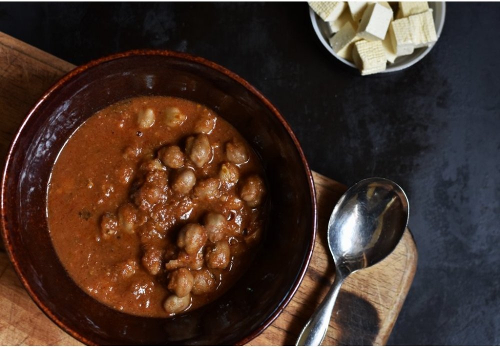 Voda, Cizrna, rajčatová pasta, cibule, slunečnicový olej, česnek, zázvor, sůl, koriandr, chilli, sušená semínka Pískavice, sušené mango,zelené chilli, římský kmín, koriandr mletý, fenykl mletý, koření (pepř, skořice, koriandr, kardamom, chilli, kmín, bílý mák, muškátový oříšek, bobkový list).