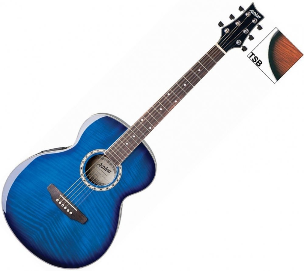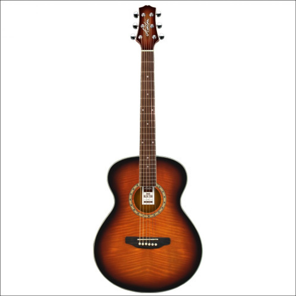 Ashton SL 29 je akustická kytara s úzkým tělem, která i tak umí nabídnout bohatý zvuk. Vrchní deska nástroje je vyrobena ze smrku s laminem ze žíhaného javoru, luby a záď ze dřeva sapele. Krk je mahagonový s dvoucestnou výztuhou pro nastavení. Hmatník a kobylka jsou z materiálu SmartWood. Černá hlava nástroje je osazena chromovanou ladící mechanikou. SL29 je perfektní nástroj na cesty, k táboráku ...