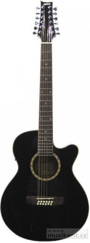 Ashton SL 29/12CEQ BK 12-ti strunná kytara12 strunná kytara Ashton SL 29/12CEQ se snímačem B-Band a s vestavěnou ladičkou. Vrchní deska žíhaný smrk, luby a záď sapele. Mahagonový krk s palisandrovým hmatníkem. Provedení BK - černá.