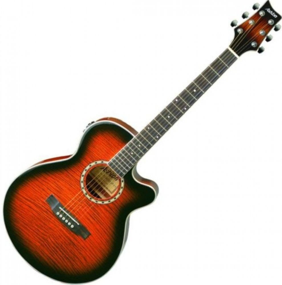 elektroakustická kytara s menším tělem (slim)Ashton SL29CEQ je elektroakustická kytara s úzkým tělem a snímačem Fishman Isys T s vestavěnou ladičkou. Vrchní deska je vyrobena z prémiového smrku, luby a záď jsou ze dřeva sapele. Nabízí velmi dobré zpracování a skvělý zvuk. Díky menšímu tělu a výřezu a tím pádem snadnějšímu přístupu ke všem pražcům je vhodná pro menší hráče nebo na cestování. Vrchní deska: žíhaný smrkLuby: sapeleZáď: sapeleHmatník: SmartWoodKrk: mahagonKobylka: SmartWoodHardware: Die cast, chromovanýSnímač a předzesilovač: Fishman Isys T s vestavěnou ladičkouOvladače: hlasitost, přepínač fáze, contour, ladičkaKonektory výstupu: jack