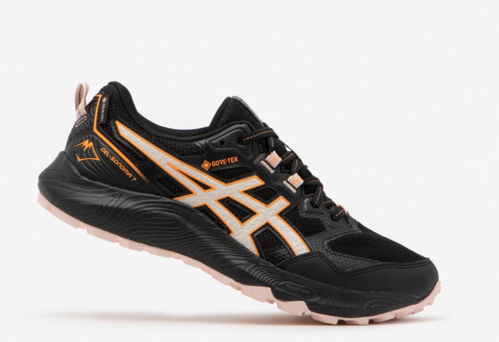 Dámské běžecké boty ASICS GEL-SONOMA 7 GTX W jsou jedním z trailových bestsellerů této značky. Velkým plusem tohoto modelu je povrchová úprava GORE-TEX®, což je voděodolná a větruvzdorná membrána chránící chodidlo při běhu ve vlhkém prostředí či jiných nepříznivých podmínkách. Jak už název bot napovídá, i tento model je vybavený známou tlumící technologií GEL™ (pod patou), která snižuje nárazy při pohybu vpřed. Podešev je vyrobená z kvalitní pryže a její trailová podrážka má skvělou trakci při běhu z kopce a do kopce. Svršek ze zasílené prodyšné síťoviny a odolné syntetické kůže se dokonale přizpůsobí chodidlu a tkaničky umožní maximálně možné padnutí. Po celé délce boty je v mezipodešvi tlumící materiál AMPLIFOAM™, jenž v kombinaci s hybridní stélkou MaxLite poskytuje příjemný a lehký pocit z běhu.