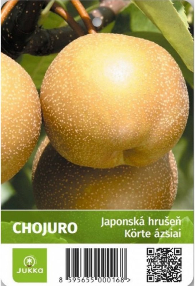 Raně zimní odrůda asijské hrušně Chojuro je semenáč původem z Japonska. Plodí ve shlucích, doporučuje se probírka pro dosažení větších plodů. Plodnost je brzká, hojná. Plody jsou středně velké, ploše kulovité, nazelenalé barvy se světlejšími tečkami. Dužnina je bílé barvy, nehnědne, je šťavnatá, jemná, dobré chuti. Plody této asijské hrušně nepraskají. Odolnost proti napadení strupovitostí i proti nízkým teplotám je vysoká. Vhodná do všech poloh.
