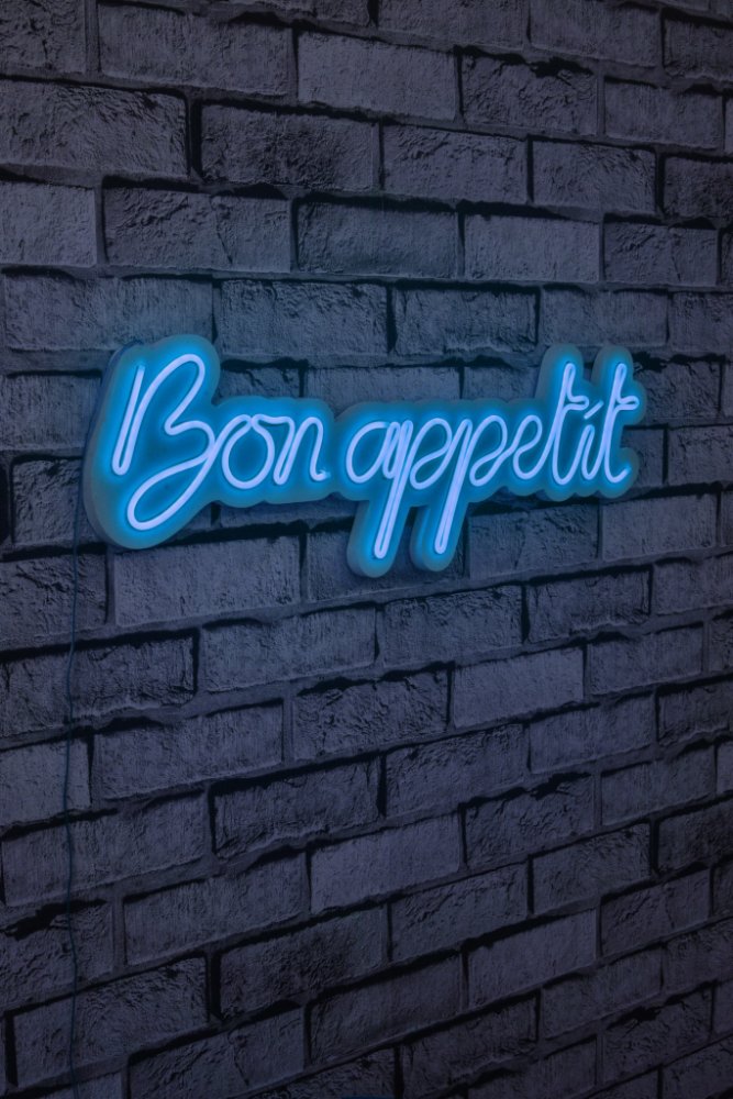 LED dekorativní nápis BON APPETIT v modrém provedení.