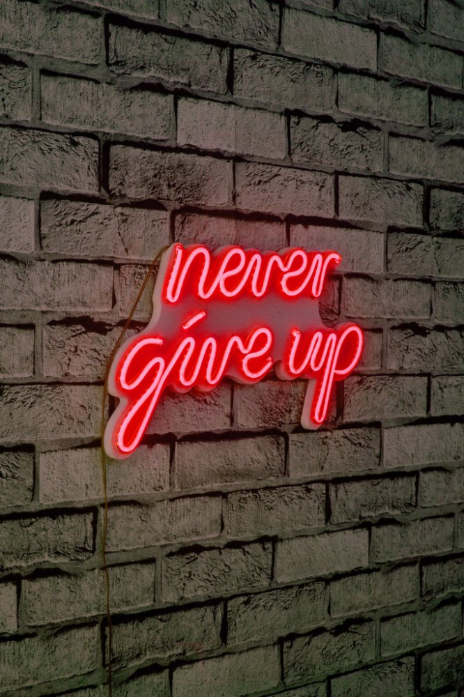 LED dekorativní nápis NEVER GIVE UP v červeném provedení.