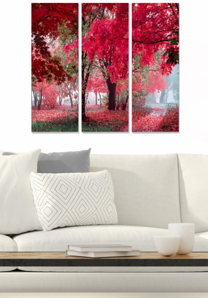 Ponořte se do krásy přírody s tímto nádherným uměleckým dílem s živým zobrazením růžových až rubínových listů stromů, které vdechnou každému prostoru okouzlující půvab.