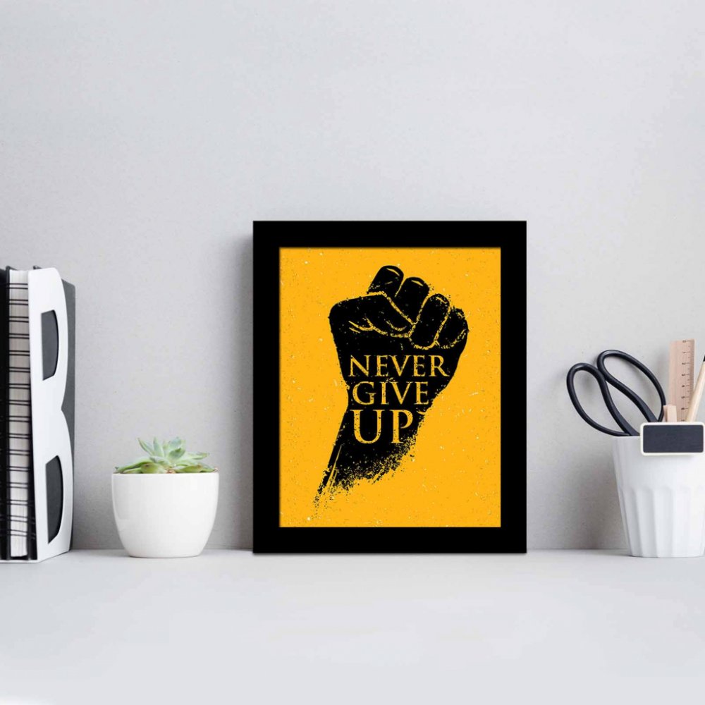Motivační obraz na MDF desce dává jasně najevo, podle čeho je třeba se v životě řídit, tak si obraz pověste na stěnu a: "NIKDY SE NEVZDÁVEJ!" Na MDF obraze v černém rámu je vám představován inspirativní projekt "NEVER GIVE UP" (Nikdy se nevzdávej). Toto dekorativní dílo, vytvořené s maximální precizností, obsahuje silný obraz, který ve vás probudí motivaci a odhodlání.