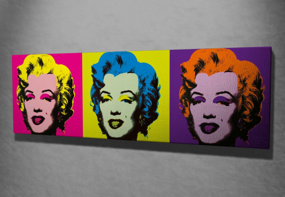 Třikrát vyobrazený portrét ikonické Marilyn Monroe, představuje její nadčasovou krásu v různých barvách a nabízí tak jedinečný a živý nádech tohoto klasického námětu. Ať už jste nadšenci do umění, nebo jen chcete pozvednout výzdobu svého interiéru, tento obraz na plátně musíte mít.