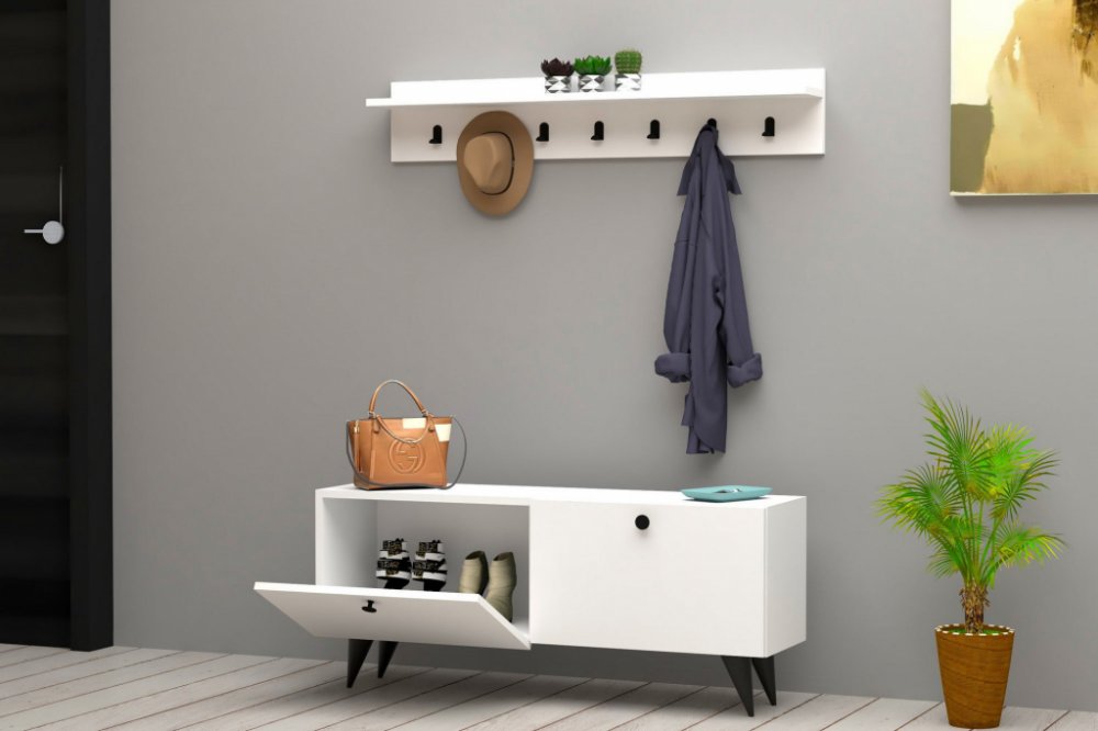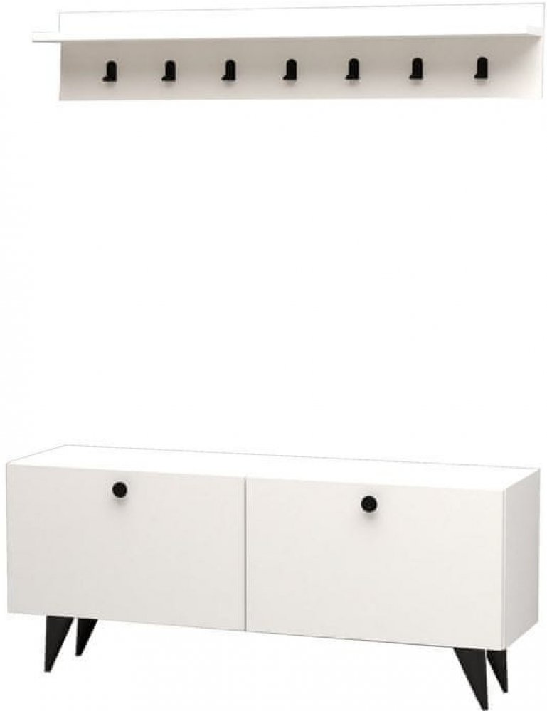 Proměňte svou předsíň pomocí stylového a funkčního věšáku do předsíně!Už vás nebaví každý den chodit do nepřehledné a neorganizované předsíně? Chcete pohodlné a stylové řešení, díky kterému budete mít své věci uklizené a čisté?Uspořádejte si snadno předsíňNáš předsíňový věšák s mnoha policemi a závěsným věšákem nabízí dostatek úložného prostoru pro všechny vaše důležité věci. Od kabátů a klobouků až po tašky a boty - vše má své místo a vaše předsíň bude vypadat čistě a příjemně.Maximalizujte svůj prostorKabáty a bundy můžete pověsit na víceúčelový věšák, čímž ušetříte cenné místo na podlaze. Nástěnná police nabízí další úložný prostor pro menší předměty, jako jsou klíče, peněženky a dekorativní předměty. Rozlučte se s nepořádkem a přivítejte dobře organizovanou předsíň!Pozvedněte svůj interiér elegancíNáš věšák do předsíně je vyroben ze 100% melaminované dřevotřísky a pyšní se elegantním a moderním designem, který bez problémů zapadne do jakéhokoli stylu interiéru. Svěží bílá barva dodá vaší předsíni nádech sofistikovanosti a elegance a okamžitě vylepší váš interiér.Technické detaily:Typ výrobku: Předsíňový stojanMateriál: 100% dřevotříska potažená melaminemTloušťka: 18 mmRozměry předsíňového stojanu: Šířka: 113 cm, Výška: 48,5 cm, Hloubka: 35 cmNástěnná police Velikost: Šířka: 113 cm, Výška: 20 cm, Hloubka: 15. 8 cmZávěsná police Šířka: 113 cmBarva: bíláNespokojte se s nepřehlednou a neinspirovanou předsíní. Upgradujte na náš předsíňový regál ještě dnes a proměňte svůj prostor ve stylovou a organizovanou oázu!Vyrobeno v Turecku Rozměry základny (šxvxh): 113x48,5x35 cm Rozměry nástěnné police (šxvxh): 113x20x15,8 cm Objem balení: 0,071148 m3 Doby, kdy jste své věci házeli na pohovku, jsou pryč. Umístěte tento klasický věšák do vstupní části a vnese do vašeho domova nadčasový styl a funkčnost. Otevřený design vám umožní vzít si jen to, co potřebujete. Moderní styl věšáku na oblečení vylepší každý interiér. 100% melaminem potažená dřevotřísková deska Tloušťka: 18 mm Rozměr předsíňového věšáku: Šířka: 113 cm Výška: 48,5 cm Hloubka: 35 cm Rozměr nástěnné police: Šířka: 113 cm Výška: 20 cm Hloubka: 15,8 cm Šířka věšáku: 113 cm Víceúčelový věšák Početné police Možnost připevnění na zeď Další úložný prostor