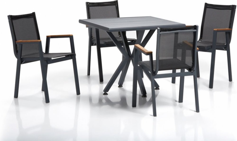 SAMARA je zahradní nábytek složený z jednoho čtvercového stolu a čtyř židlí.