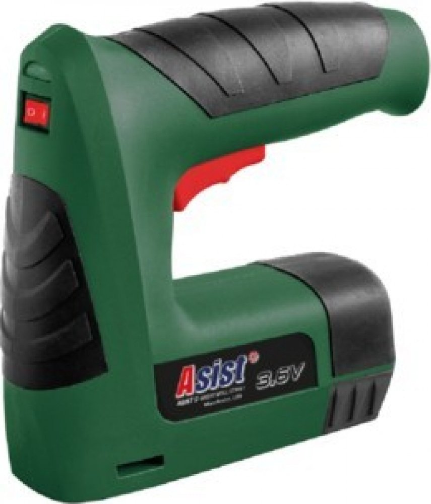 Aku sponkovačka 3,6 V Li-ion AE2ST03DN od značky Asist. Napájeno skrze Li-ion baterii o 1500 mAh. Napětí 3,6V. Kapacita 50 ks sponek T50 nebo 100 ks sponek typ 53. Doba nabíjení v rozsahu 3 až 5 hodin. Vhodné pro dílnu i domácnost.