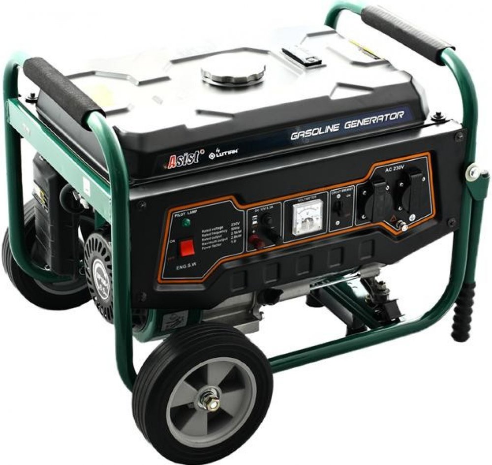 Benzínový čtyřtaktní generátor - Elektrocentrála s max. výkonem 2500W a výstupními hodnotami: 230V/50Hz. Pro domácí a hobby použití. Manipulaci s touto elektrocentrálou Vám usnadní kolečka a madla. Zajistí vám zdroj náhradního napájení elektrospotřebičů a to buď z důvodu výpadku proudu nebo mimo dosah možného připojení na klasickou síť.