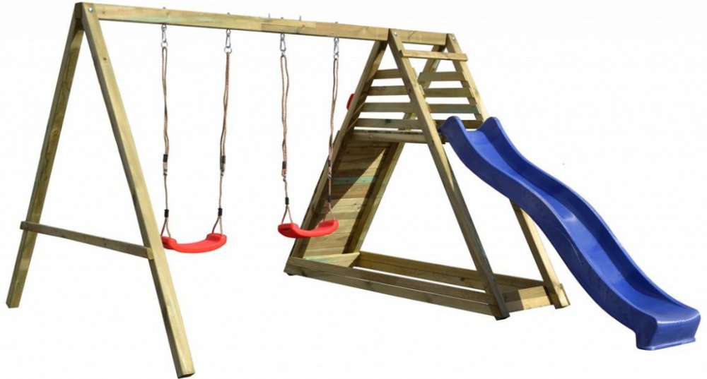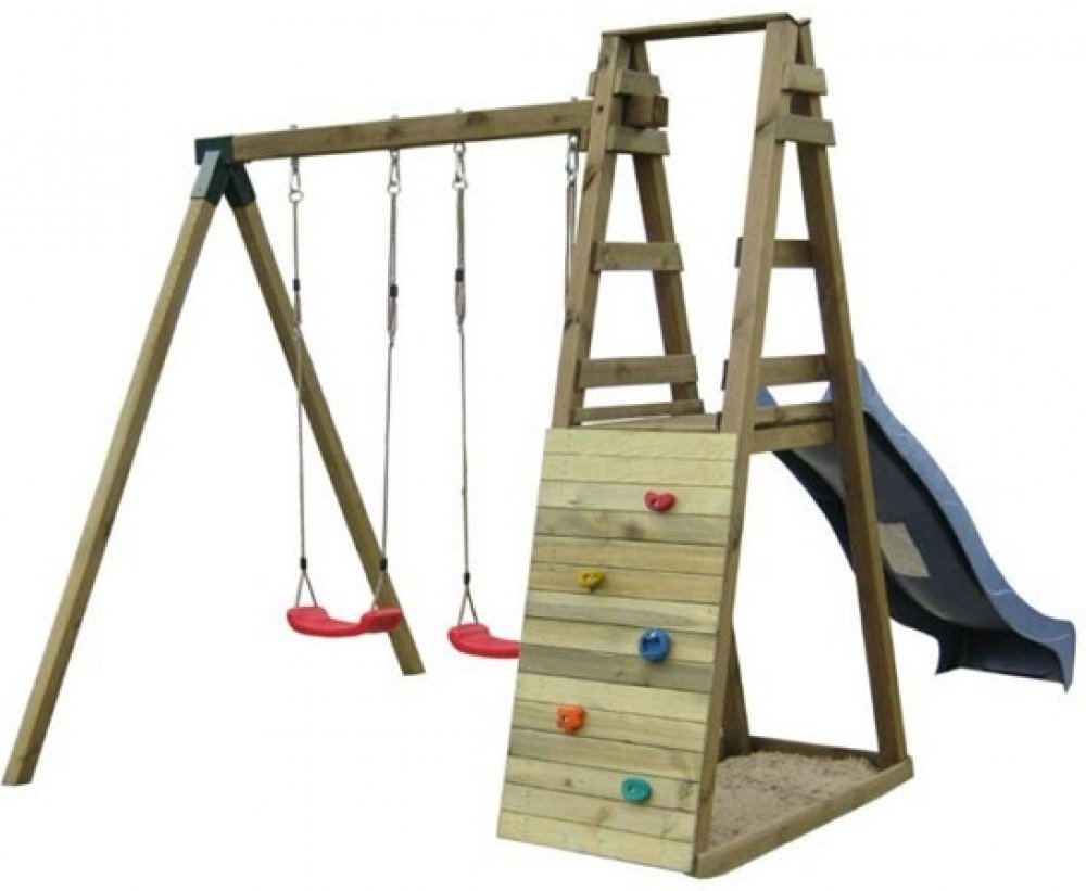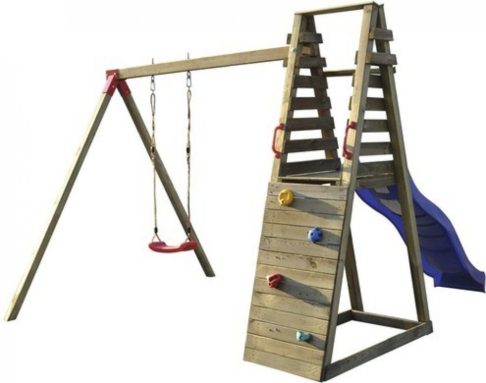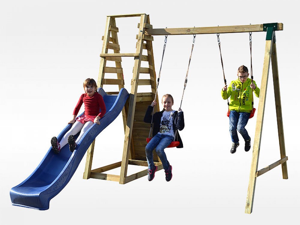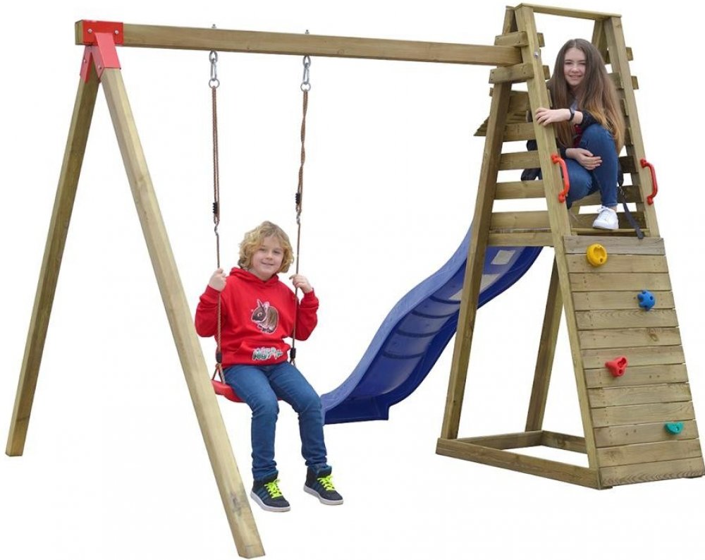 Toto multifukční dětské hřiště si Vaše děti určitě zamilují. Na hlavní věž děti vylezou po lezecké stěně a dolů se pak dostanou sklouznutím po krásné skluzavce. Další zábavu si pak užijí na houpačce. Jednoduše ideální zábava pro každé dítě.