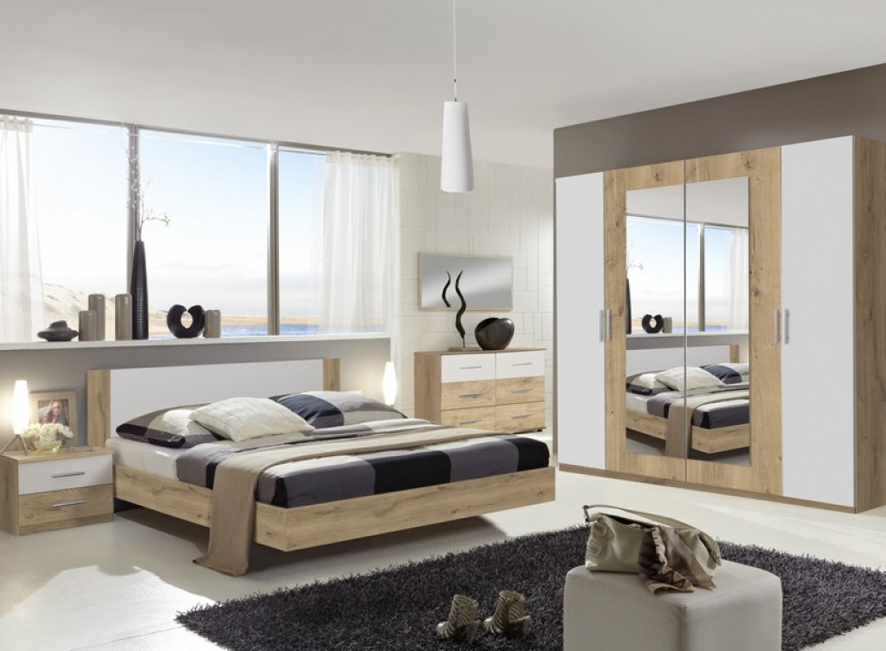 Sestava ložnice obsahuje celkem 4 části: - manželská postel: rozměr lůžka 180x200 cm, nosná středová konstrukce (2 x široký nosník), zadní kolmé čelo, bez roštu a bez matrace (kombinovat se 2 ks pouze lamelových roštů rozměru 90×200 a 2 ks matrace rozměru 90×200), rozměry: 189x80x210 cm, výška rámu (bočnice): 31,5 cm, hloubka pro uložení roštu do rámu: 11 cm - pár nočních stolků (2 kusy): 2 x zásuvka nad sebou, vodorovné úchyty - šedá alu barva, rozměry stolku: 52x40x38 cm - šatní skříň: 4 x dveře, 2 x velké zrcadlo uprostřed, svislé úchyty - šedá alu barva, členění vnitřního prostoru - 2 x vnitřní blok: levý vnitřní blok (otevřený úložný prostor, 1 x závěsná šatní tyč z kovu, 1 x vnitřní police), pravý vnitřní blok (úložný prostor, 3 x vnitřní police - výškově nastavitelná), perokresba vnitřního prostoru skříně viz fotogalerie, rozměry: 225x210x58 cm