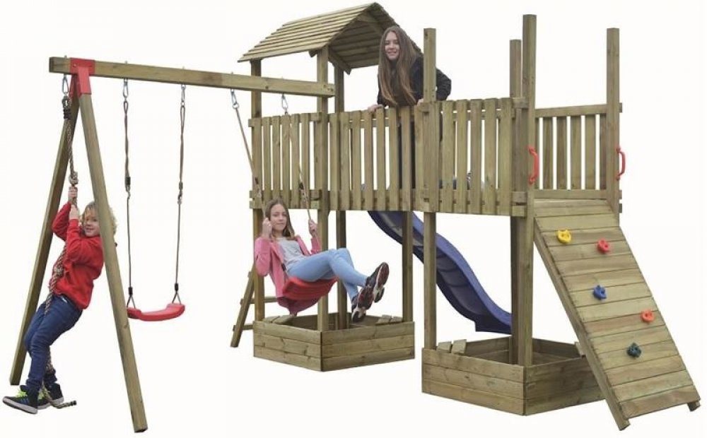 Toto multifukční dětské hřiště Palác zábav 2 věže si Vaše děti určitě zamilují a poskytne jim spostu zábavy na dlouhou dobu. Dřevěná sestava herních prvků pro děti,kterou využijete na zahradě od jara do podzimu. Jednoduše ideální zábava pro každé dítě a na každou zahradu.