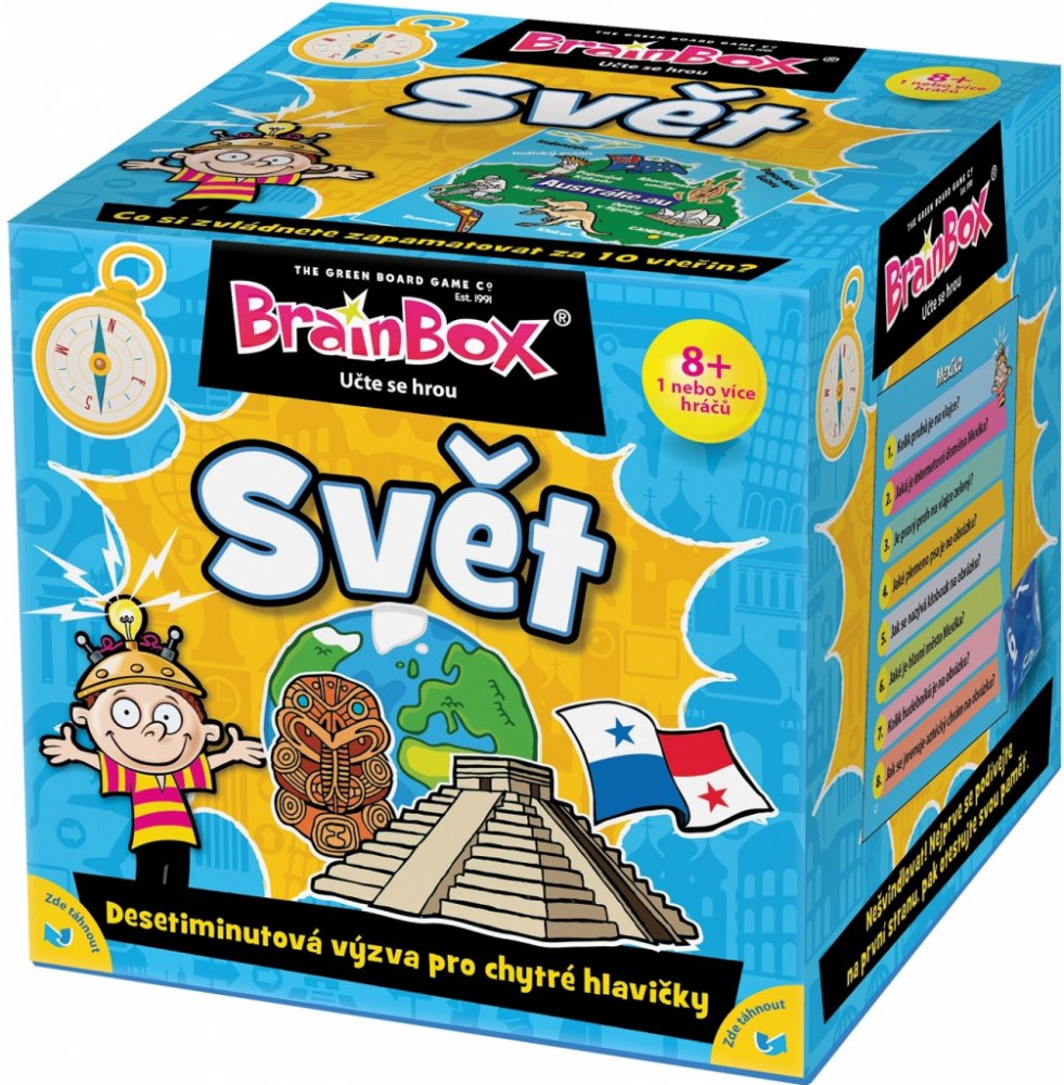 Tento originální BrainBox, speciálně navržený pro zapojení celé rodiny do hry, pomáhá procvičovat paměť, zlepšovat pozorovací schopnosti a přináší mnoho zajímavých skutečností a znalostí o světě, ve kterém žijeme