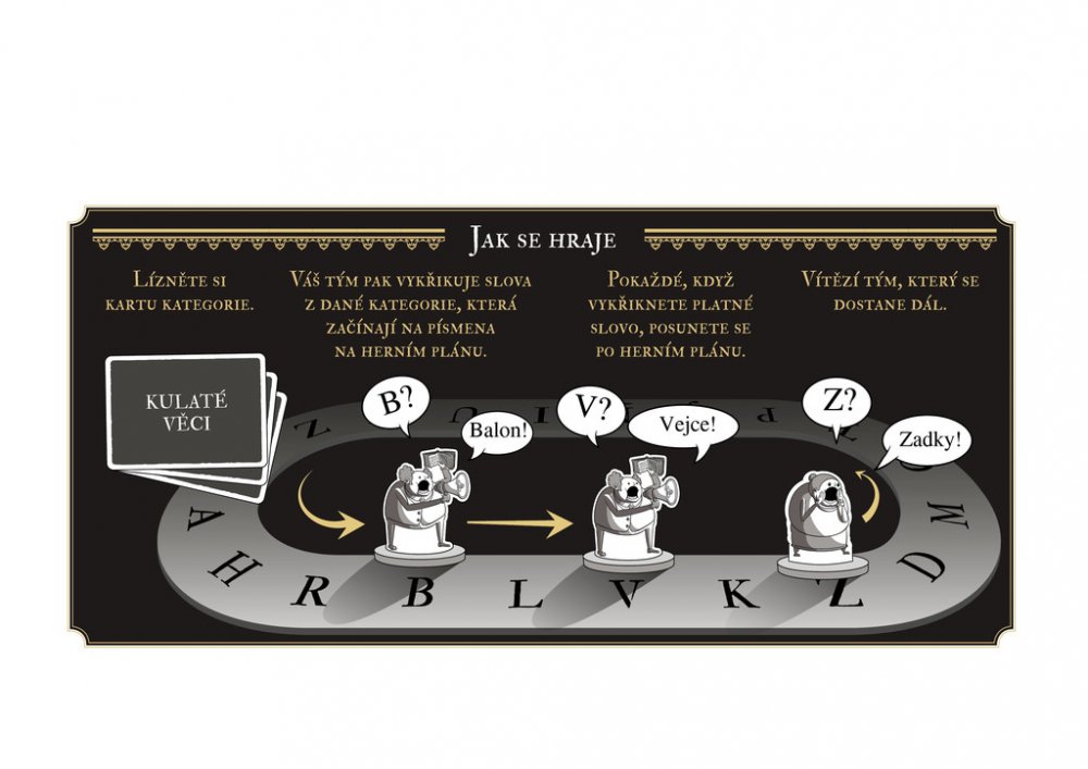 Ve zkratce - váš tým bude vykřikovat slova, která začínají na konkrétní písmeno a zapadají do určité kategorie. Počáteční písmena se změní po...