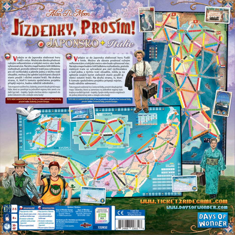 Jízdenky, prosím! – Kolekce map 7: Japonsko a Itálie přináší oboustranný herní plán, který je nejdelší v celé sérii rozšíření Map Collection, a to s Japonskem na jedné straně a Itálií na druhé.