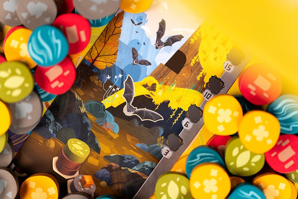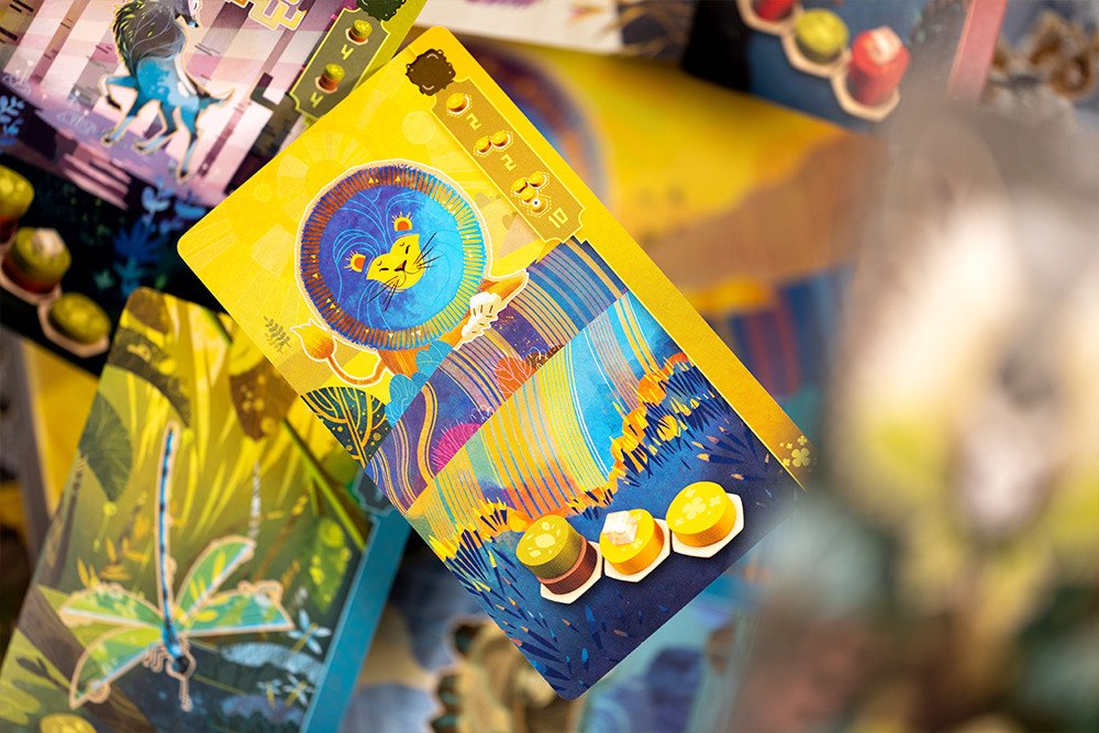 Volba zvířat: Následně vybírají karty zvířat. Každé zvíře boduje podle toho, jak velké a dobře propojené biotopy (např. 3 modré žetony vody v řadě) na desce hráče najde.