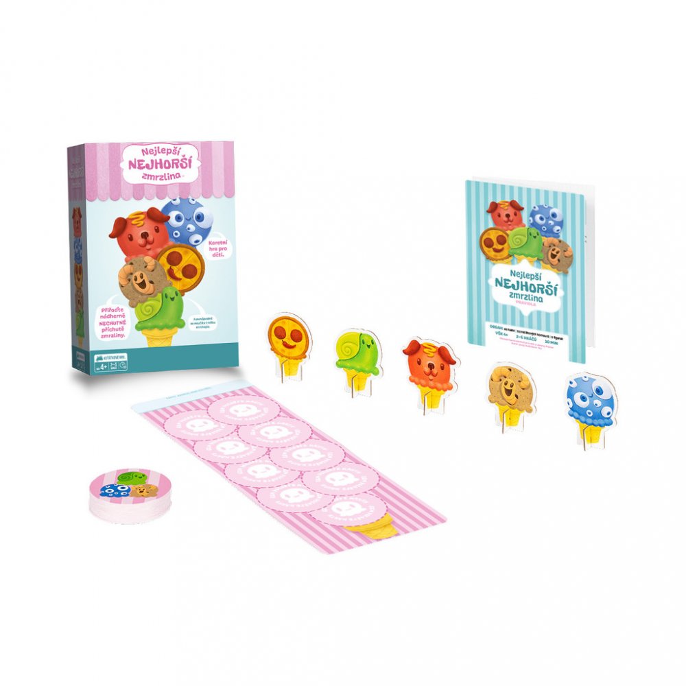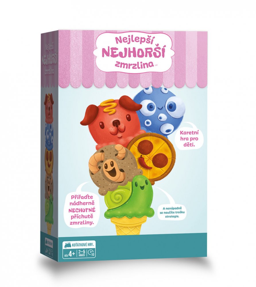 Nejlepší nejhorší zmrzlina je hra od vydavetele Výbušných koťátek, která je určena pro nejmenší hráče. Každý z nich bude sbírat kopečky zmrzlin různých příchutí (pizzová nebo třeba slimáčí) a přidávat si je na svůj kornoutek. Kdo jako první dokončí velkou zmrzlinu, ten zvítězí!