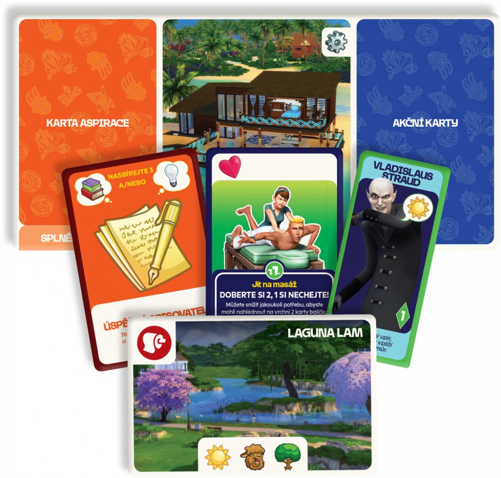 - Karty ikonických simíků oživují známé postavy, jejichž efekty dokážou výrazně zamíchat průběhem hry a změnit vaše plány.