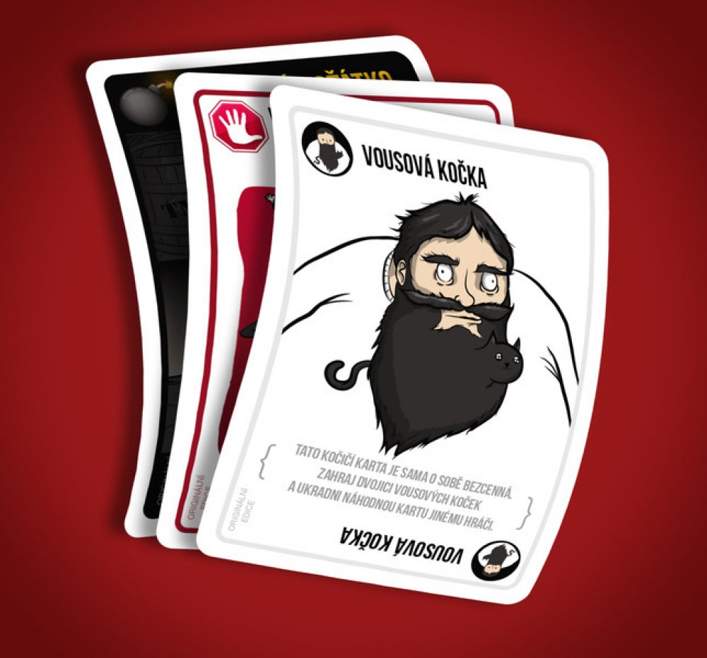 Dalších 15 karet přináší rozšíření Strakatá koťátka. Těšit se můžeš třeba na ultimátní Prokletí kočičí prdelky, které zbavuje jednoho hráče možnosti dívat se na své karty. Hlavním tahákem tohoto rozšíření je ale Strakaté koťátko a jeho super schopnost držení Výbušného koťátka v ruce.