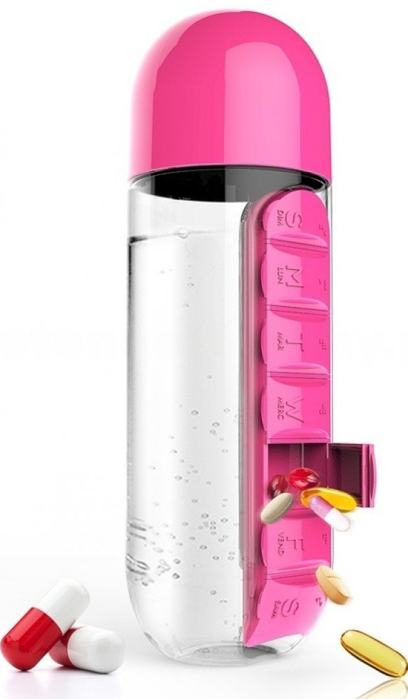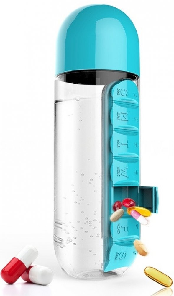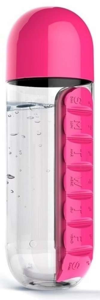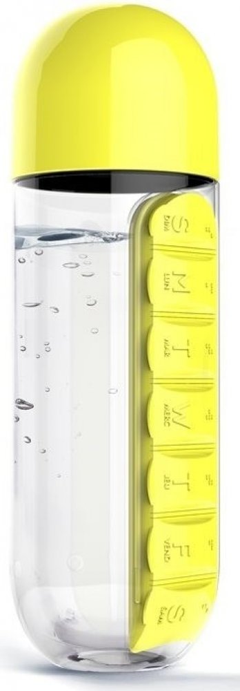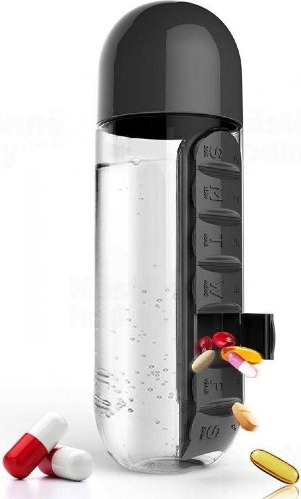 Praktická multifunkční láhev na nápoje s celotýdenním dávkovačem vitamínů, potravinových doplňků, léků atd.