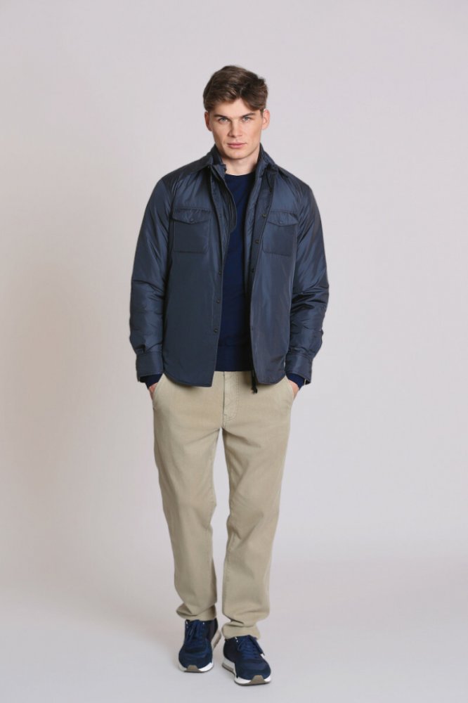 Pánská bunda rovného košilového střihu. Jednobarevný design s límcem a zapínáním na patentky doplňuje zakulacený spodní lem, náprsní kapsy a nenápadné kapsy v bočních švech. Materiálové složení se středně silnou vatelínovou výplní Thermore zaručuje skvělou hřejivost, lehkost a maximálně příjemný pocit při nošení. Dokonale stylový kousek, který skvěle doladí váš neformální outfit.