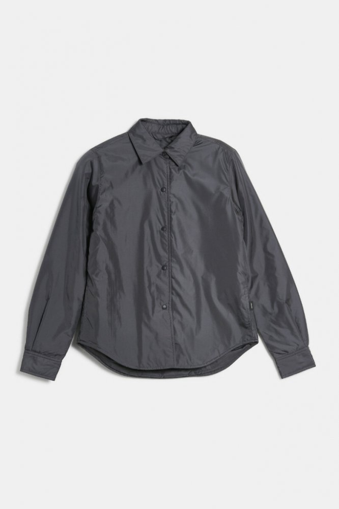 Dámská bunda úzkého košilového střihu. Jednobarevný design s límcem a zapínáním na patentky doplňuje zakulacený spodní lem a knoflíkové manžety na dlouhých rukávech. Materiálové složení se středně silnou vatelínovou výplní Thermore zaručuje skvělou hřejivost, lehkost a maximálně příjemný pocit při nošení. Dokonale stylový kousek, který skvěle doladí váš neformální outfit.