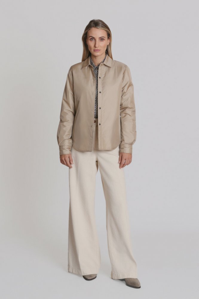 Dámská bunda úzkého košilového střihu. Jednobarevný design s límcem a zapínáním na patentky doplňuje zakulacený spodní lem a knoflíkové manžety na dlouhých rukávech. Materiálové složení se středně silnou vatelínovou výplní Thermore zaručuje skvělou hřejivost, lehkost a maximálně příjemný pocit při nošení. Dokonale stylový kousek, který skvěle doladí váš neformální outfit.