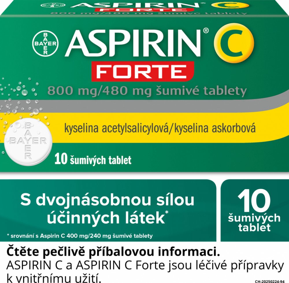 - Síla dávky přípravku ASPIRIN C Forte šumivé tablety (800 mg kyseliny acetylsalicylové/480 mg kyseliny askorbové) nemusí být vhodná pro léčbu dospívajících.