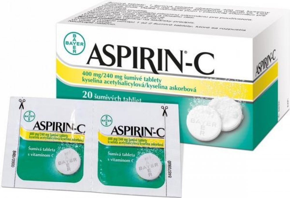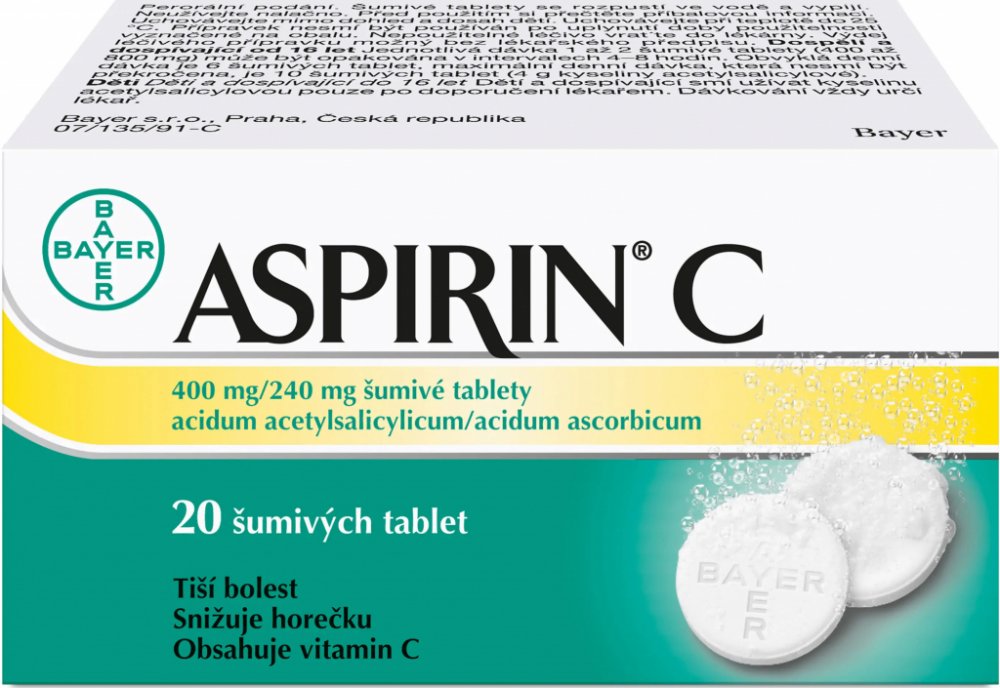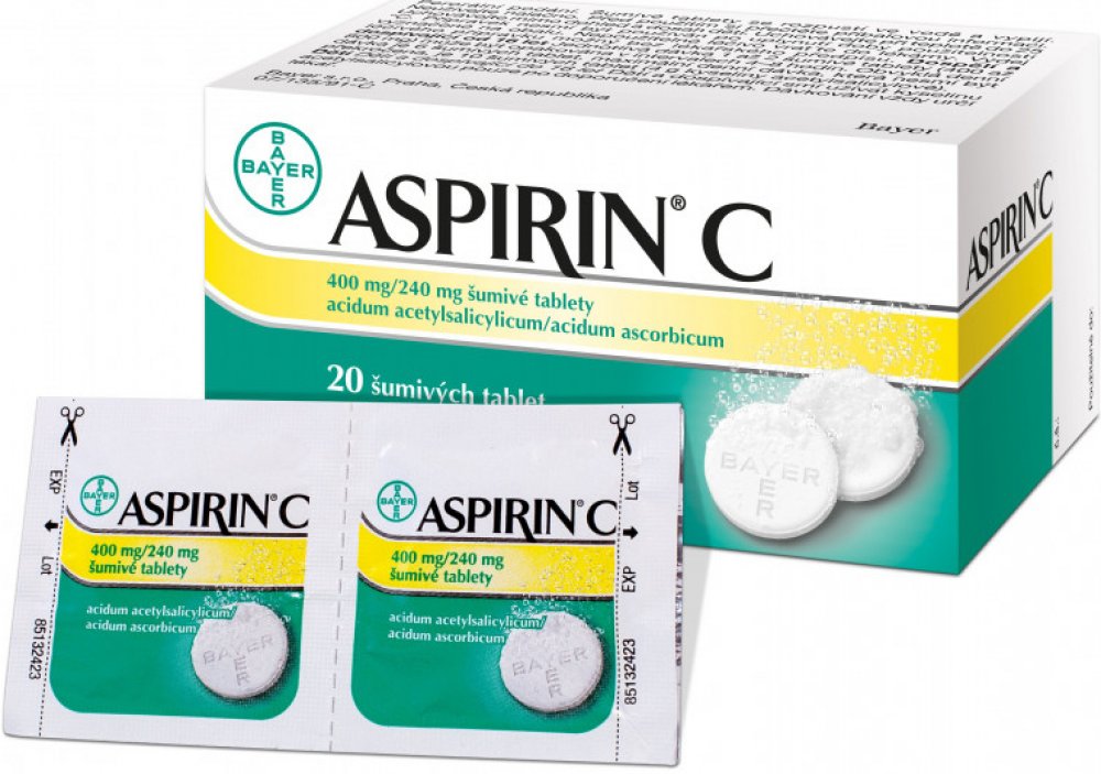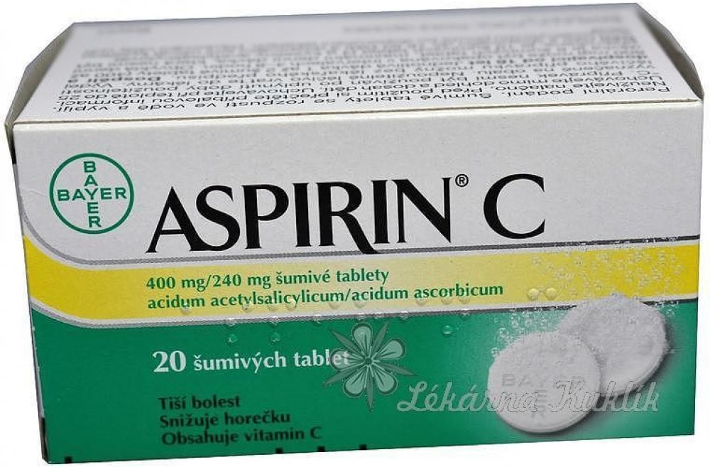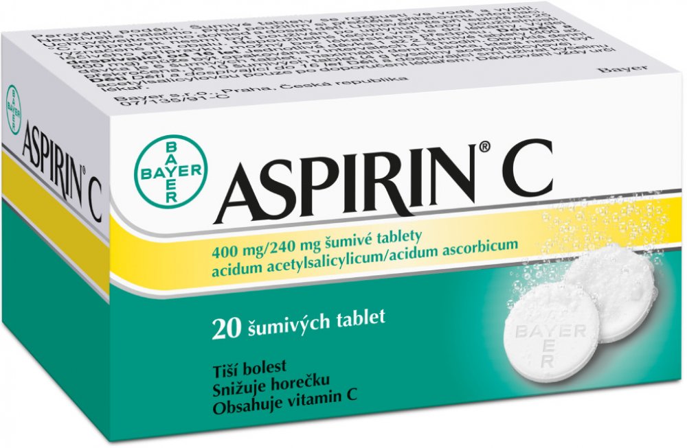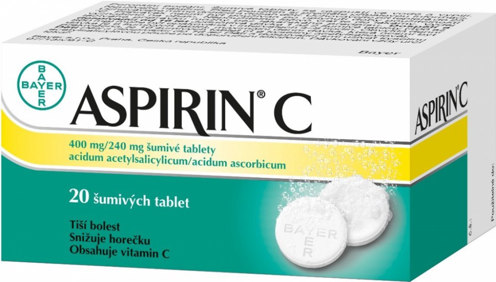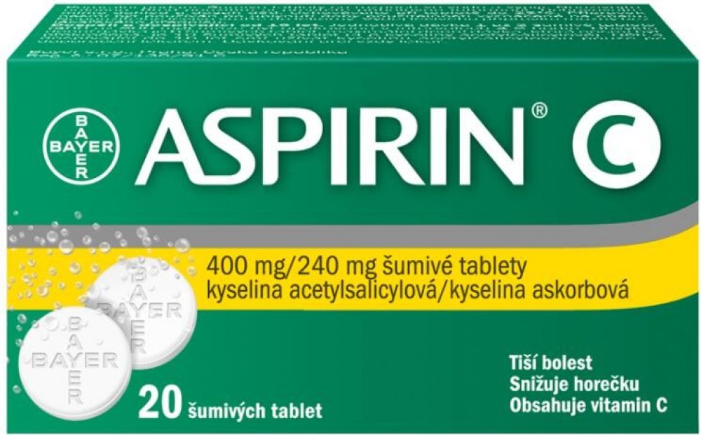 Léčivé látky: Acidum acetylsalicylicum 400 mg, Acidum ascorbicum 240 mg