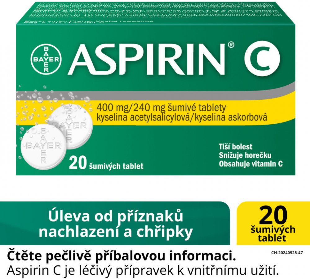 Aspirin C pomáhá při nachlazení a projevech chřipky snížením teploty a úlevou od bolesti.
