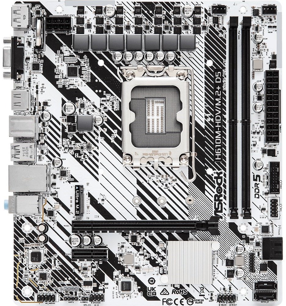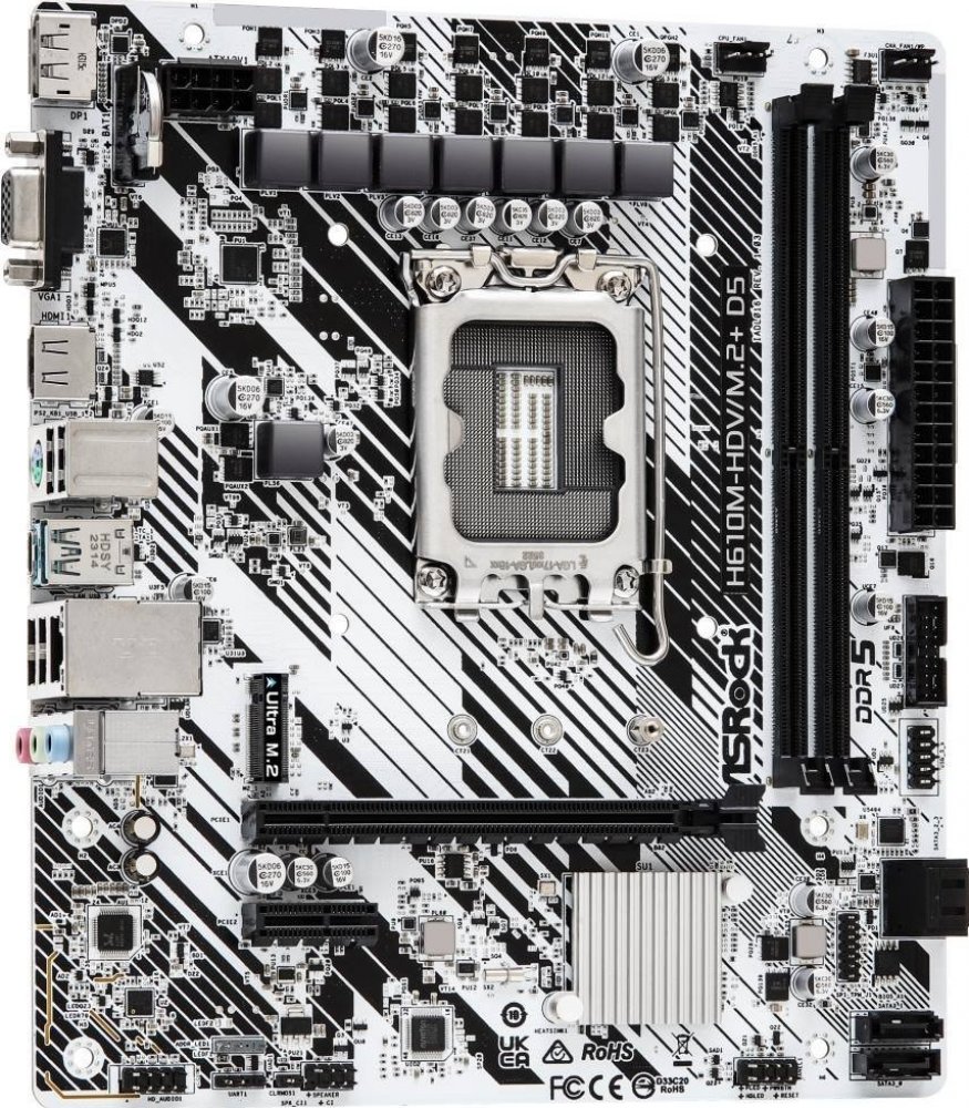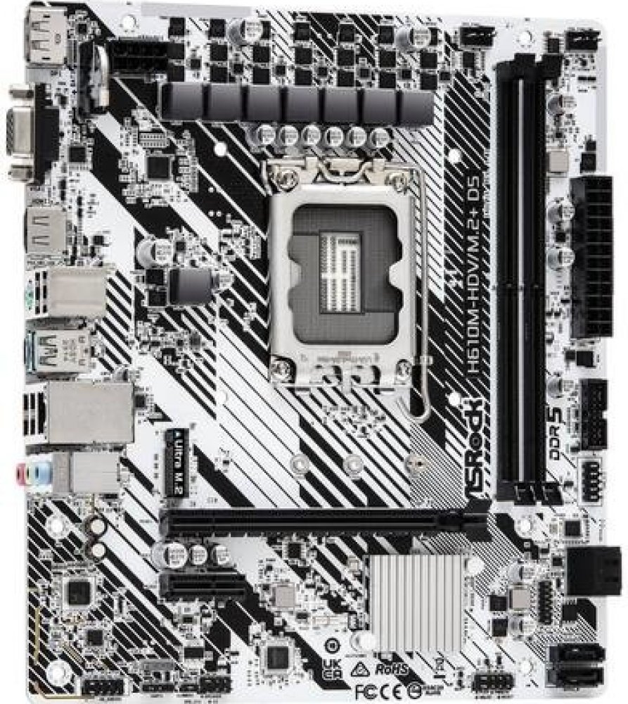 Socket 1700 ASRock Intel H610 Intel jako běžné PC pro vyvážený výkon pro běžnou zátěž pro začátečníky běžné 1.0 count LAN 1 Gb/s 1 count Realtek ALC897 DisplayPort 1.4 HDMI 2.1 1.0 count 3.0 count 6.0 count 96 GB 2 DDR5 5600 MHz 4 1 1 220 x 193 mm micro ATX (mATX) 2 1