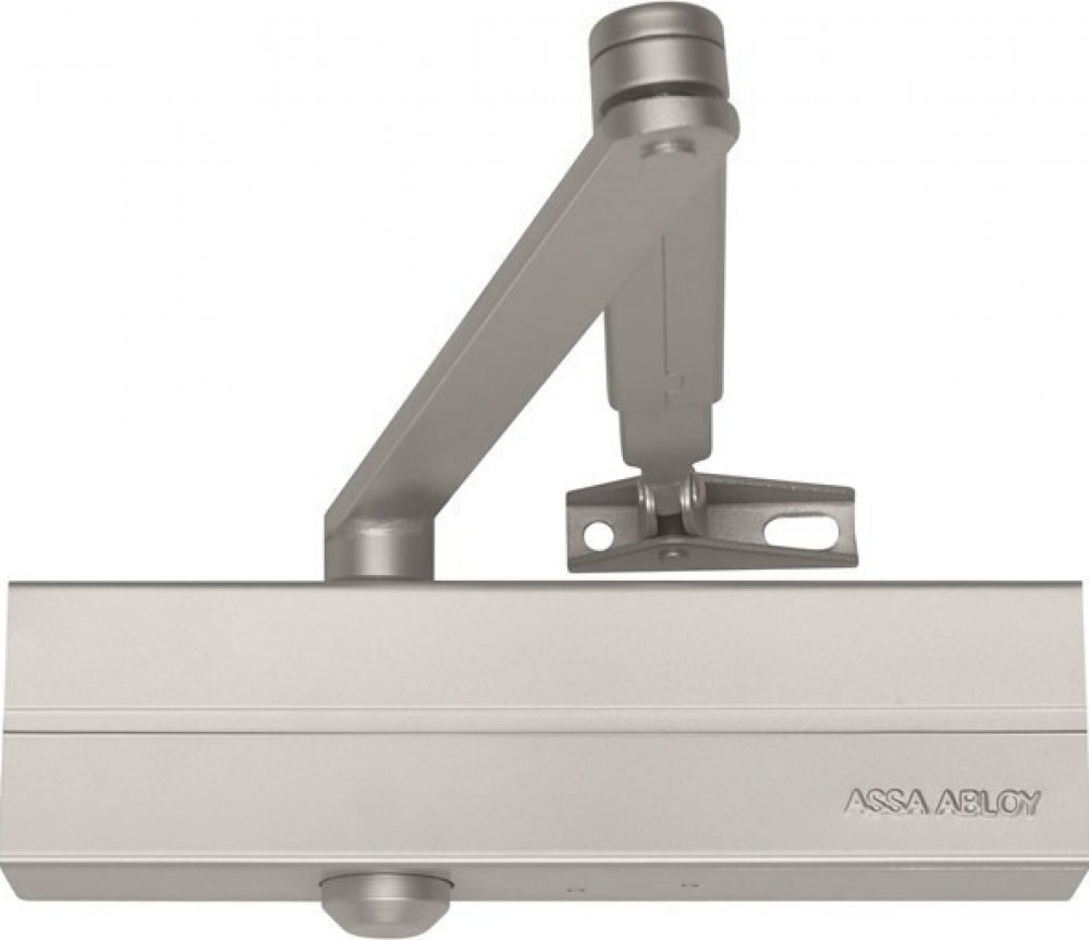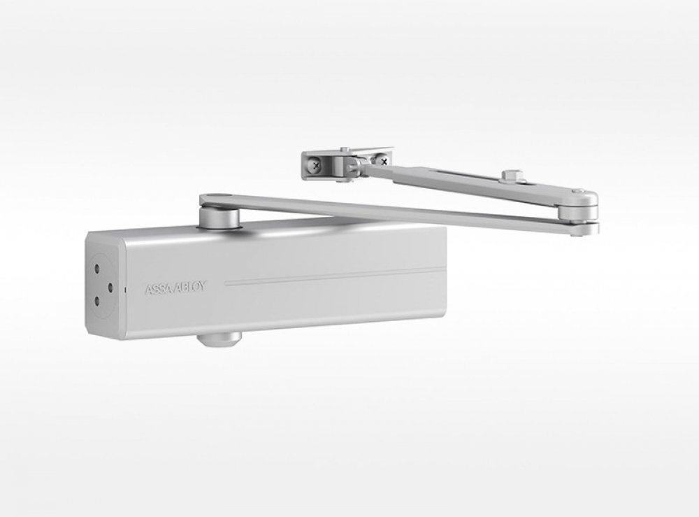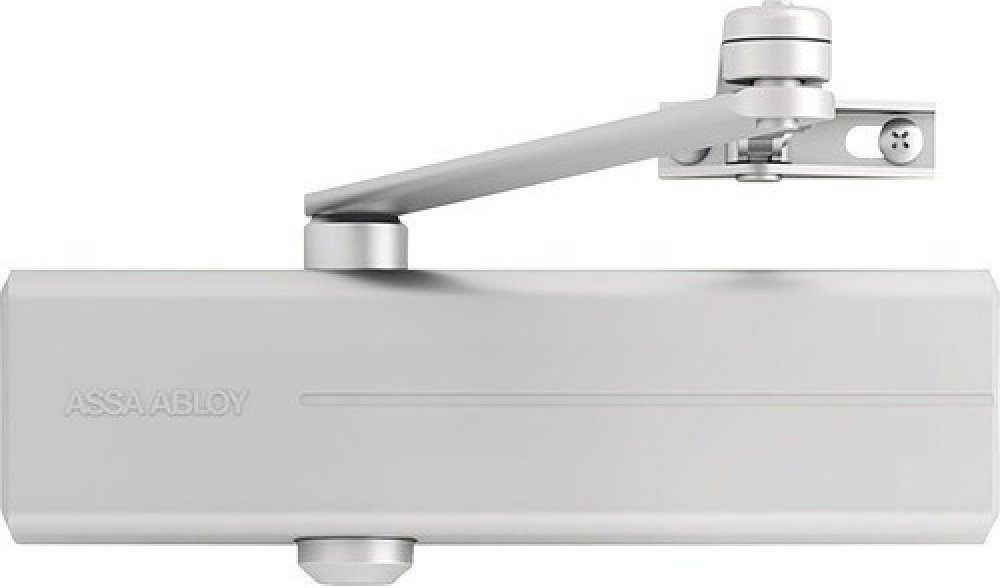 Dveřní zavírač ASSA ABLOY splňují vnitrstání a mezinárdně právní předpisy. Protikouřové a požádně odolné dveře moou být vybaveny dveřními zavírači ASSA ABLOY v souladu s normami EN1154; EN1155 a EN1158. Moderní design. Rychlá instalace a snadné seřízení. Jednotná sada doplňků (ramínka a montážní plechy). Protipožární dle EN1154. DC140NEW:dveřní zavírač s hřebenovou technologií a lomeným ramínkem pro požárně odolné a kouřotěsné dveře pro dveře do šířky 1250mm a váhy 100kg rozsah síly EN 2/3/4/5 (nastavení síly dle instalace) úhel otevření do 180°, při instalaci síly zavírače EN5 je max. úhel otevření 125° osvědčení o shodě s normou EN 1154 použití pro levé i pravé dveře plynule nastavitelná rychlost zavírání, dovírání dveří a úhlu otevření (back-check) barva: stříbrná, bílá, černá, hnědá Zavírač dveří Assa-Abloy DC 140 včetně ramene. Pro všechny typy dveří, včetně protipožárních a kouřotěsných shody podle EN 1154: -Síla EN 2/3/4/5, <