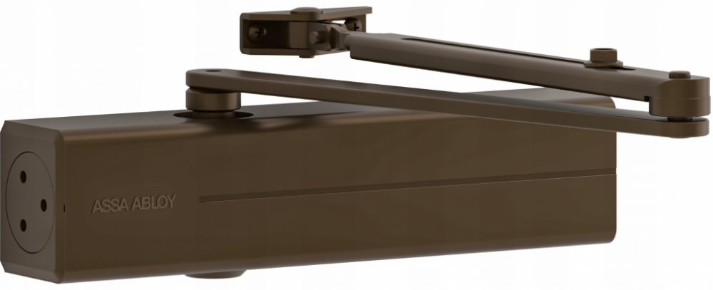 Zavírač Assa Abloy DC140 s ramenem hnědý.