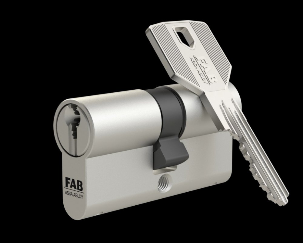 Mosazná cylindrická vložka od značky FAB ve velikosti 30+35 a třídou ochrany 4 je určena pro zabezpečení dveří, které vyžadují velmi vysoké zabezpečení. Takovým příkladem pak můžou být zejména vchodové dveře či přístup do důležitého objektu a místnosti. Vložka je oboustranná a obsahuje šest stavítek, včetně patentového systému na FP2 zadní doraz. Její kvalitní provedení navíc dokáže ochránit před odvrtáním bubínku i tělesa, což umocňuje její vysokou míru zabezpečení. Tato vložka umožňuje díky prostupové spojce odemčení i v případě, že je z druhé strany vložený klíč. Součástí balení se nachází pět klíčů a bezpečnostní karta, bez které kopii klíče nelze vyrobit.