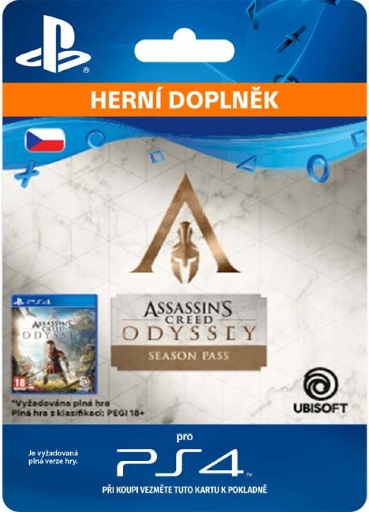 Aktivační klíč je možné použít pouze s PlayStation Network účtem, nastaveným na český (CZ) region. Aktivační klíč s jiným regionem Vám na konzoli nebude fungovat!Jedná se o doplněk ke hře a je nutné vlastnit základní hru v platformě Playstation!ASSASSIN’S CREED® ODYSSEY – SEASON PASS Vyžadována plná hra
