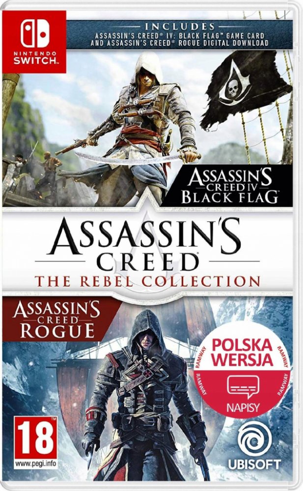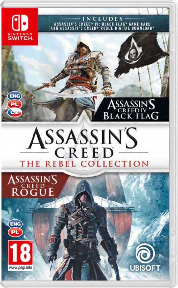 Zažij oceňovanou sérii Assassin’s Creed kdekoliv a kdykoliv. Assassin’s Creed®: The Rebel Collection nabízí dvě akcí nabité hry se všemi již vydanými DLC pro jednoho hráče. Staň se tím nejobávanějším pirátem Karibiku v Assassin’s Creed® IV Black Flag™ a překabáti se do děsivého lovce assassínů ve hře Assassin’s Creed® Rogue.