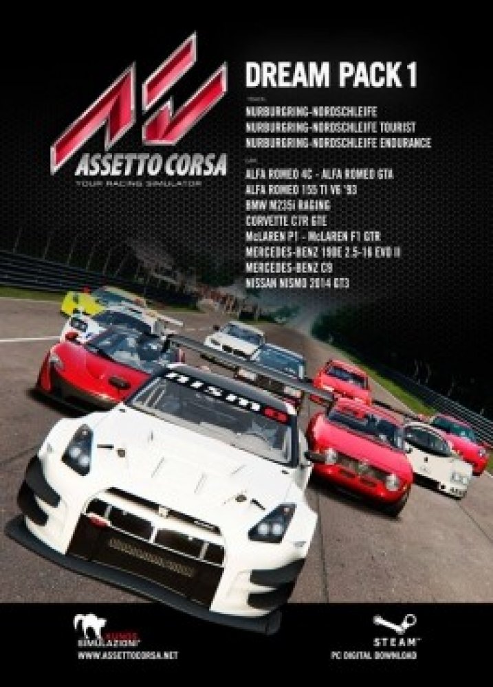 Welcome to DREAM PACK 1, the first add-on content pack ASSETTO CORSA.This package adds to Assetto Corsa the legendary circuit of Nürburgring-Nordschleife and ten new awesome cars. The circuit has been reproduced for the first time in a PC racing simulation using the Laserscan Technology, that guarantees the maximum level of precision in reproducing each detail of the track. The selection of cars has been choosen by the gamers who voted their favourite models, and it consists in a perfect mix of vehicles of different classes, type and ages, ready to satisfy any taste of Assetto Corsa users!- Features the legendary Nurburgring-Nordschleife circuit in three all-new layouts: Nurburgring-Nordschleife, Tourist, Endurance. - Features the Bridge To Gantry mode, that allows to simulate the real track day rules of Nurburgring.- Features Alfa Romeo 4C, GTA and 155 Ti V6 ‘93- Features BMW M235i Race car- Features GM Corvette C7r GTE- Features McLaren P1 and F1 GTR- Features Mercedes-Benz 190E EVO II and C9- Features Nissan GT-R NISMO 2014 GTRThe Nürburgring-NordschleifeSince its construction (1925 - 1927), the Nordschleife has enjoyed a reputation as a terrifying and merciless route through the Eifel forests. An English journalist who visited the Nordschleife during the opening race on 18 June 1927 even concluded “that it seemed as if a reeling, drunken giant had been sent out to determine the route”. The Formula 1 pilot Sir John Young Jackie Stewart – after all a three-time world champion in 1969, 1971 and 1973 – was so impressed by the circuit that he gave it the name which it will probably never lose: Green Hell (Grüne Hölle).Racing and winning on the Nordschleife has always been very special for racing drivers, because the track is one of the most demanding in the world. Tricky corners, treacherous crests, steep inclines and gradients and constantly changing road surfaces demand great skill from the driver and put vehicles to a hard test.The best-known event today is the ADAC Zurich 24-hour race, which is held on both the Nordschleife and the Grand Prix circuit and which for four days transforms the entire circuit into a huge spectacle. Up to 800 amateurs and professionals in up to 200 cars take part in this race.The carsAlfa Romeo 4CAlfa Romeo 155 Ti V6 ‘93Alfa Romeo GTABMW M235i Race CarGM Corvette C7r GTEMcLaren P1McLaren F1 GTRMercedes-Benz C9Mercedes Benz 190E 2.5-16 EVO IINISSAN GT-R NISMO 2014 GT3