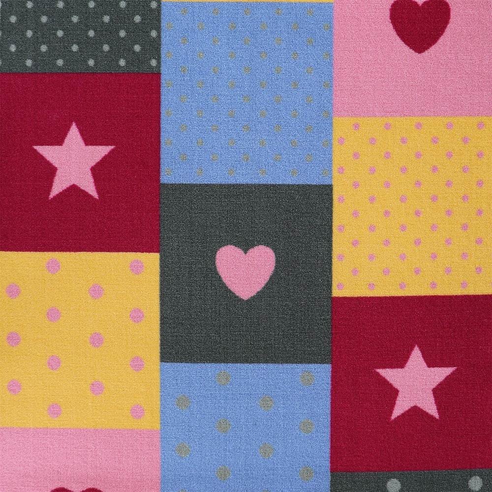 Dětský koberec Fancy z klasického smyčkového materiálu v zářivých barvách je pěkným doplňkem pro děti. Dětské koberce tohoto typu se nejlépe čistí vlažnou vodou, měkkým kartáčkem s mýdlem nebo pracím práškem.