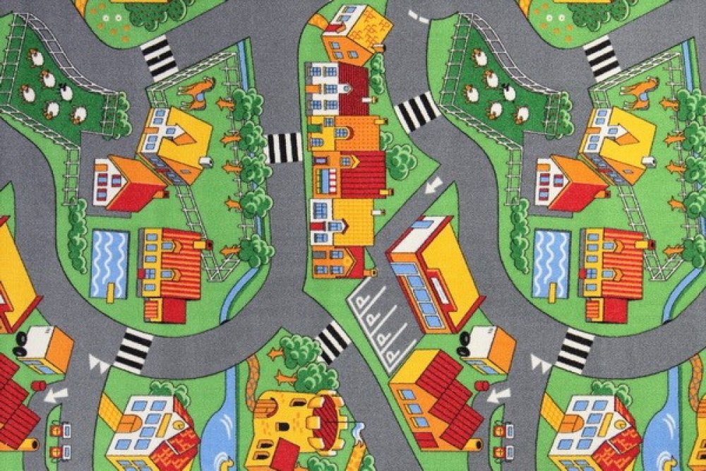 Velmi oblíbený dětský koberec LITTLE VILLAGE 90 s veselým potiskem pro kluky i holky. Metrážový koberec s motivem silnic a křižovatek je velice snadný na údržbu a je vhodný i do místností s podlahovým topením.