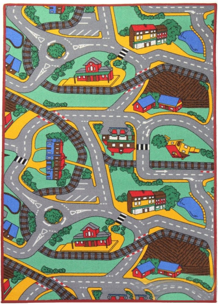 Co je ještě zábavnější než autíčka? Jasně, vláčky! A proto na tomto koberci najdete promyšlené silnice s křižovatkami a kruhovými objezdy, ale také koleje a nádraží. Proto je tento koberec určen do každého chlapeckého pokoje a můžeme Vám zaručit, že udělá radost. Vy zase oceníte vysokou kvalitu a odolnost materiálu, z nějž je koberec vyroben.