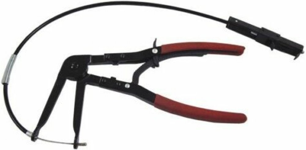 Speciální lankové kleště na spony hadic ASTA A-62363 Nástroj s adaptérem na lanku, tzv. bowdenu, určený pro montáž / výměnu samosvorných hadicových spon na palivovém, olejovém či vodním vedení apod. Díky lanku je možné tyto kleště použít i na špatně přístupných místech (např. motorové prostory, podvozky atd.), kde je práce se standardním nářadím nemožná. Kleště jsou vybaveny aretací. Délka lanka: 630 mm Rozsah práce: cca 0 – 43 mm