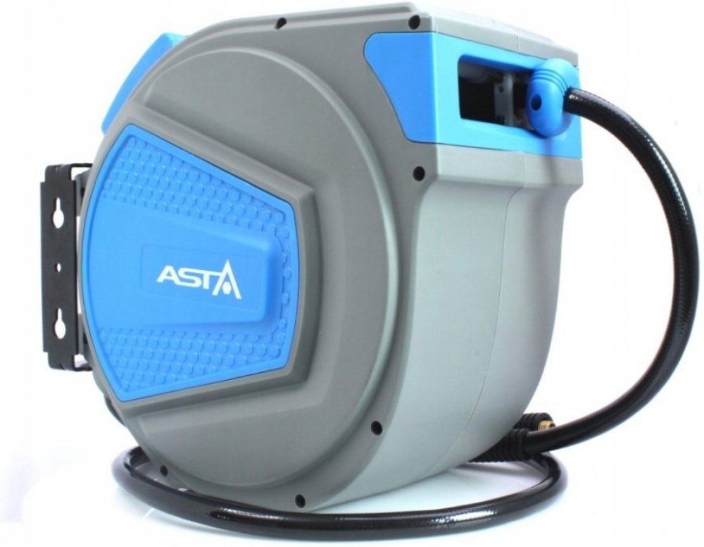 Automatický hadicový naviják – buben s hadicí na stlačený vzduch ASTA A-RPB20M Určeno k vedení stlačeného vzduchu např. od kompresoru k pneumatickému nářadí. Pro upevnění na zeď nebo strop – držák umožňuje otáčení bubnu v rozmezí 180 °. Vytaženou hadici je možné díky západkovému mechanismu libovolně aretovat, povytažením hadice se zámek opět uvolní a hadici lze navinout. Hadice je vyrobena z PVC. ...
