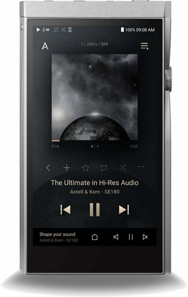První HiRes DAP značky Astell&Kern s výměnnými All-in-One moduly (DAC+AMP). D/A převodník ESS ES9038PRO, výstup až 6 Vrms, obousměrné Bluetooth 5.0 s kodeky aptX HD i LDAC, Full HD displej. Vstup USB-C, 3 výstupy (2.5 / 3.5 / 4.4 mm), podpora MQA včetně služby TIDAL Masters a offline ukládání.