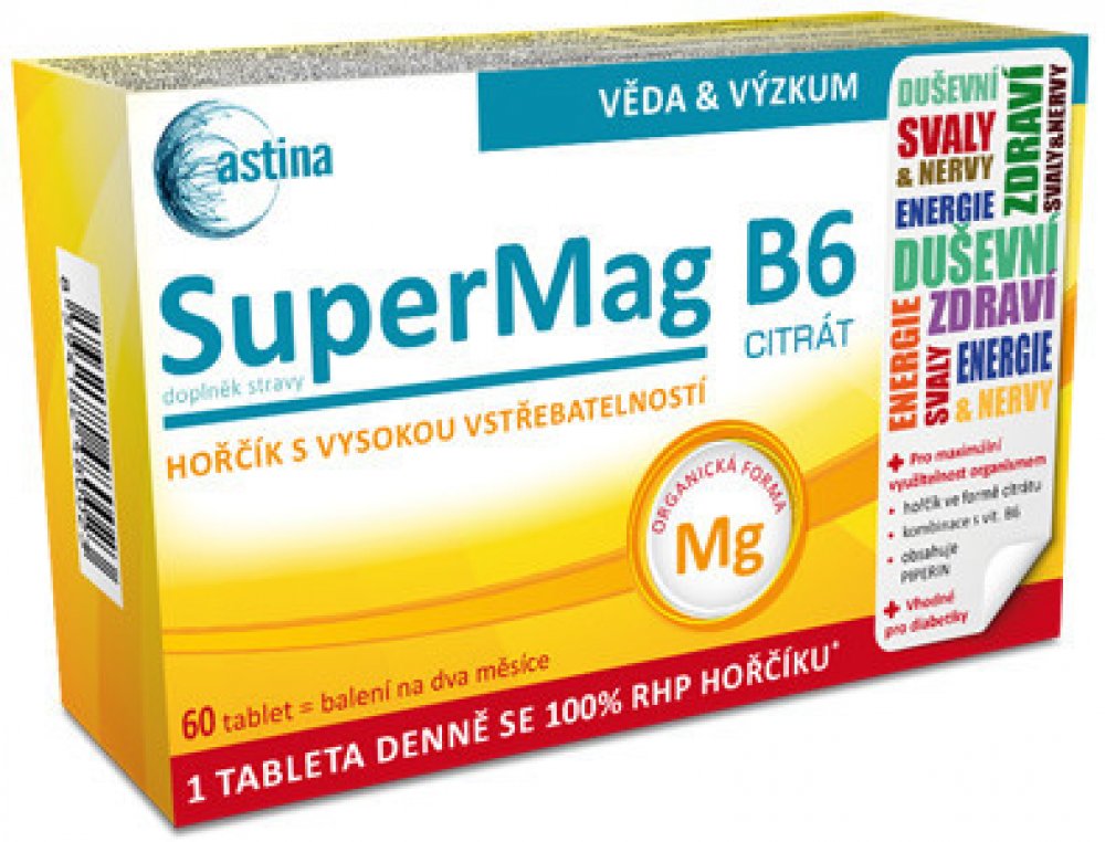 Doplněk stravy ve formě kapslí obsahuje hořčík (ve formě chelátu) a vitamin B6. Chelát Mg: diglycinát hořečnatý je vysoce efektivní forma hořčíku s vysokou biologickou dostupností, nižším rizikem střevních potíží a prokázanou účinností i u těhotných žen a dětí. Magnézium (hořčík) a vitamin B6 (pyridoxin) přispívají k normální činnosti nervové soustavy, ke snížení míry únavy a vyčerpání, normálnímu energetickému metabolismu, normální syntéze bílkovin. Hořčík přispívá k normální funkci svalů, psychické činnosti, normálnímu stavu kostí, zubů pokud rovnováze elektrolytů. Podílí se také na procesu dělení buněk. Vice na adcc.sk